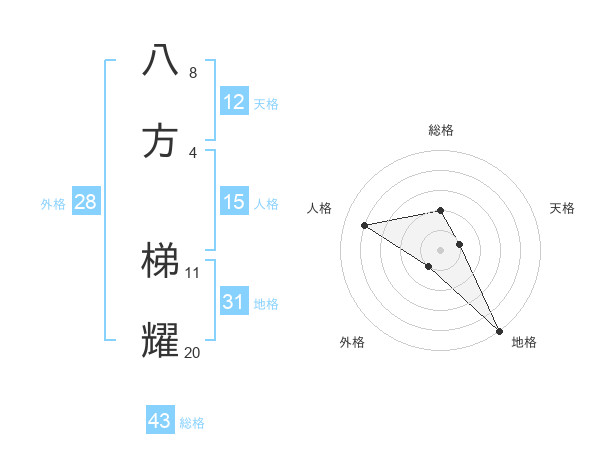 八方 梯耀さんの総格は43画の2点!