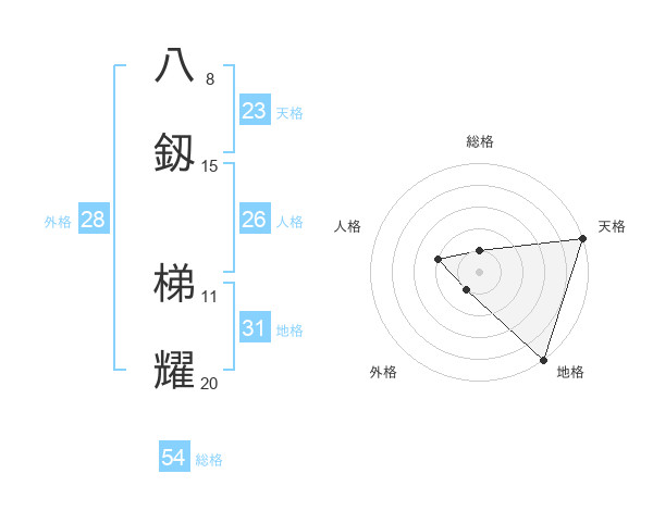 八釼 梯耀さんを姓名の画数から五運を鑑定