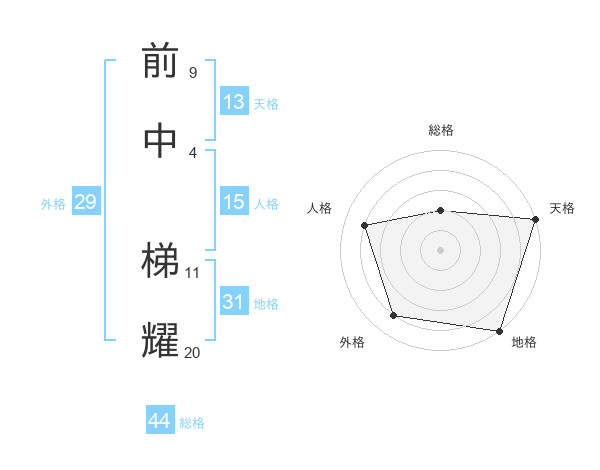 前中 梯耀さんの総格は44画の2点!