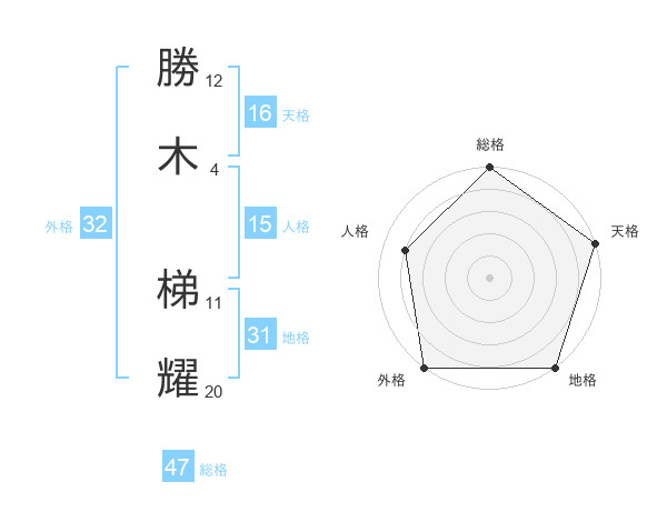 勝木 梯耀さんの総格は47画の5点!