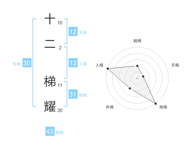 十二 梯耀さんの総格は43画の2点!