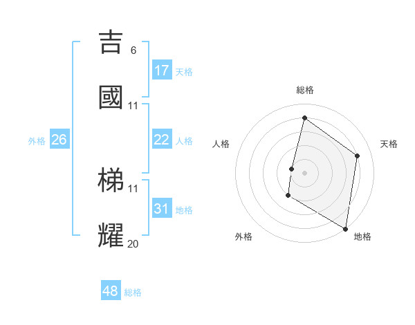 吉國 梯耀さんを姓名の画数から五運を鑑定