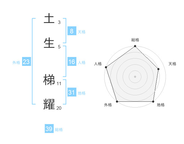 土生 梯耀さんの外格は23画の5点!