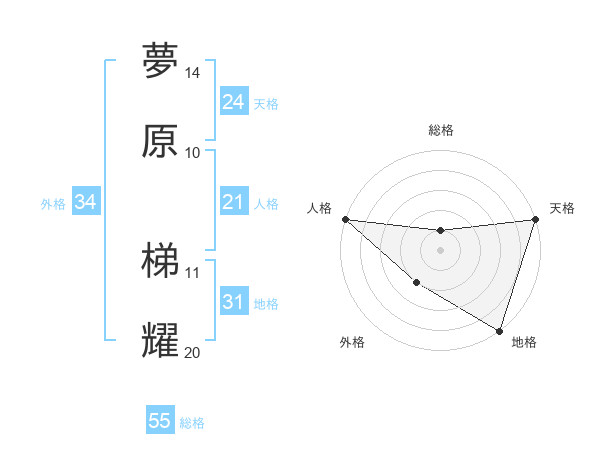 夢原 梯耀さんの天格は24画の5点!