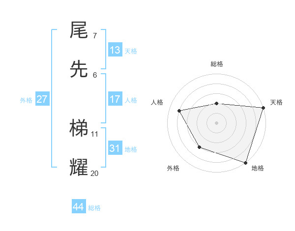 尾先 梯耀さんの総格は44画の2点!