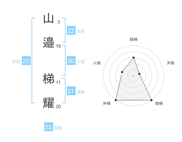 山邉 梯耀さんの総格は53画の3点!