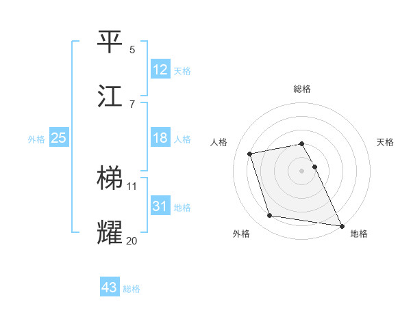 平江 梯耀さんの総格は43画の2点!