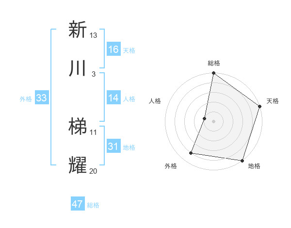 新川 梯耀さんの総格は47画の5点!