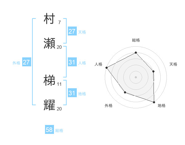 村瀬 梯耀さんを姓名の画数から五運を鑑定