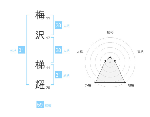 梅沢 梯耀さんを姓名の画数から五運を鑑定