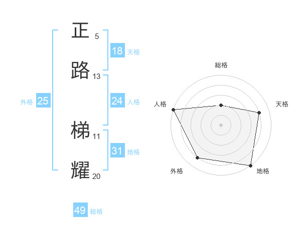 正路 梯耀さんの外格は25画の4点!