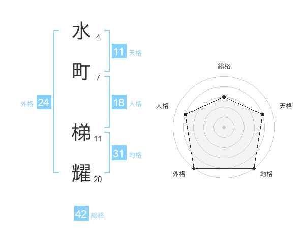 水町 梯耀さんの外格は24画の5点!