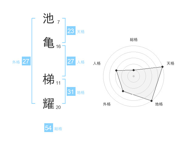 池亀 梯耀さんの総格は54画の1点!