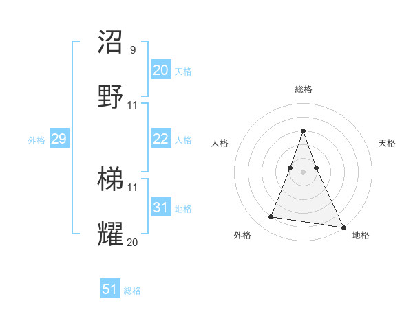 沼野 梯耀さんの外格は29画の4点!