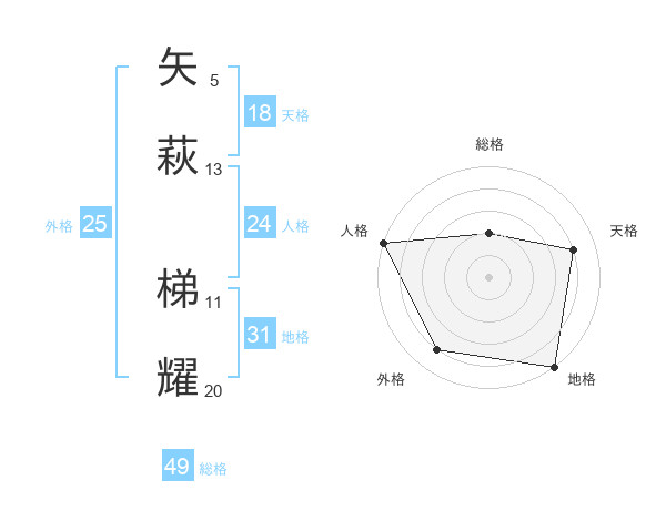 矢萩 梯耀さんを姓名の画数から五運を鑑定