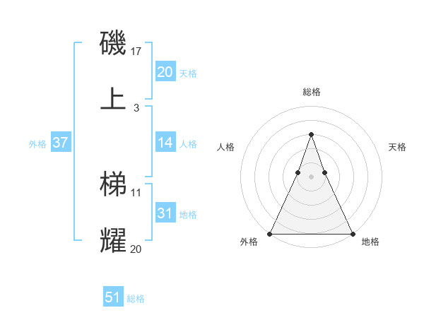 磯上 梯耀さんを姓名の画数から五運を鑑定