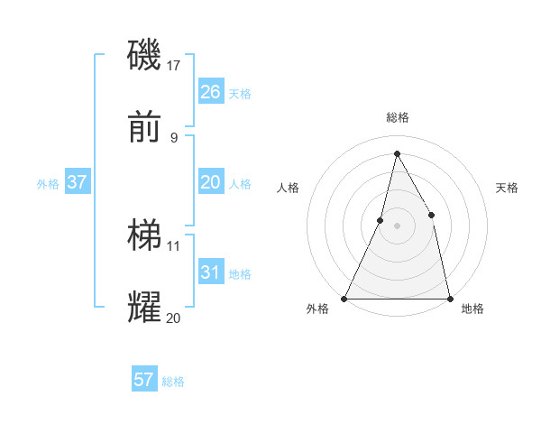 磯前 梯耀さんを姓名の画数から五運を鑑定