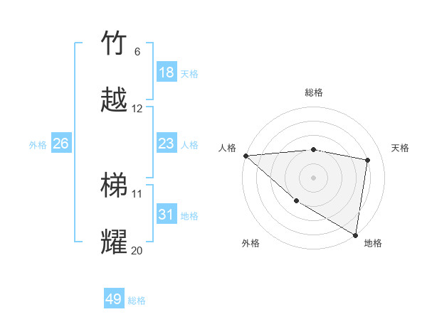 竹越 梯耀さんを姓名の画数から五運を鑑定