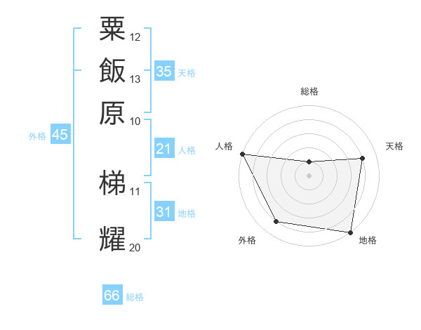 粟飯原 梯耀さんの地格は31画の5点!