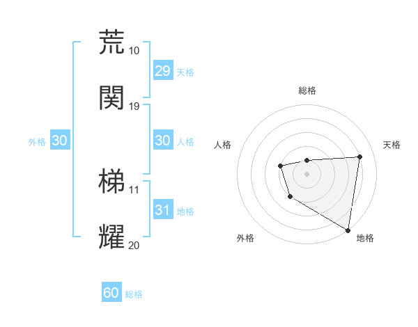 荒関 梯耀さんの総格は60画の1点!