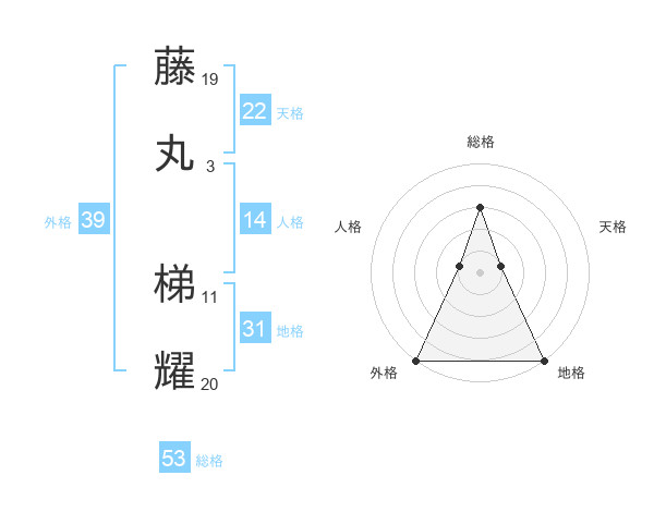 藤丸 梯耀さんを姓名の画数から五運を鑑定