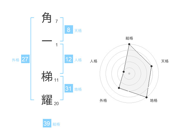 角一 梯耀さんの地格は31画の5点!