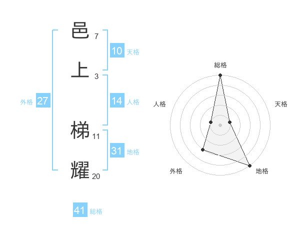 邑上 梯耀さんの総格は41画の5点!