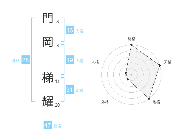 門岡 梯耀さんの総格は47画の5点!