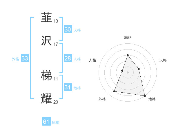 韮沢 梯耀さんの総格は61画の3点!