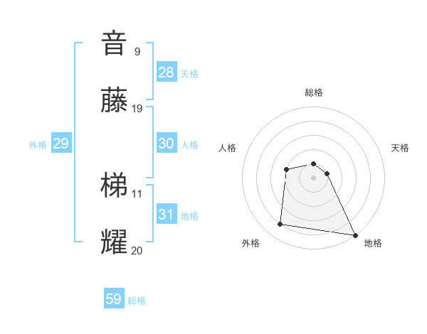 音藤 梯耀さんの総格は59画の1点!