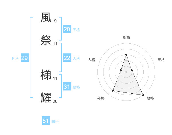 風祭 梯耀さんの総格は51画の3点!