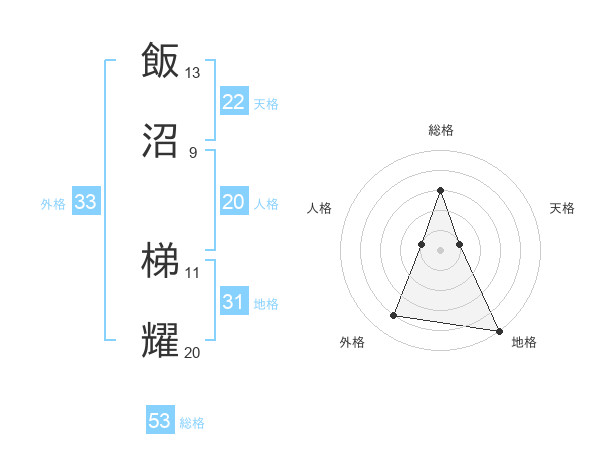 飯沼 梯耀さんを姓名の画数から五運を鑑定