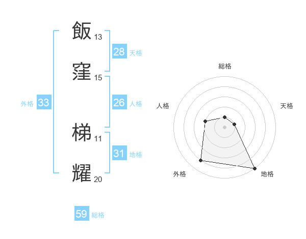 飯窪 梯耀さんの総格は59画の1点!