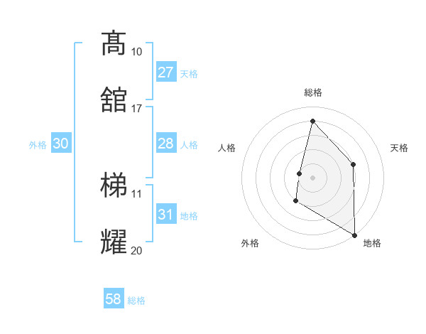 髙舘 梯耀さんを姓名の画数から五運を鑑定