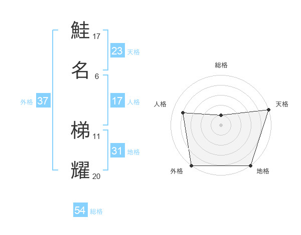鮭名 梯耀さんを姓名の画数から五運を鑑定