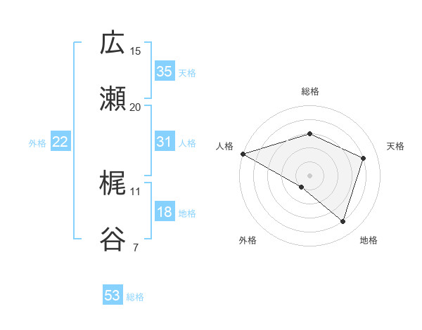広瀬 梶谷さんを姓名の画数から五運を鑑定