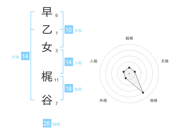 早乙女 梶谷さんを姓名の画数から五運を鑑定