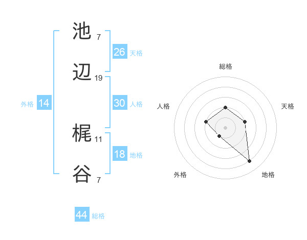 池辺 梶谷さんの総格は44画の2点!