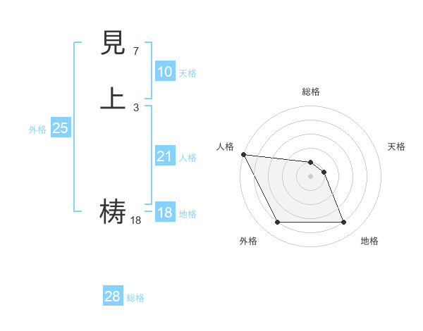 見上 梼さんの人格は21画の5点!