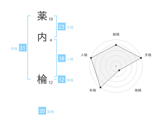 薬内 棆さんの総格は35画の4点!
