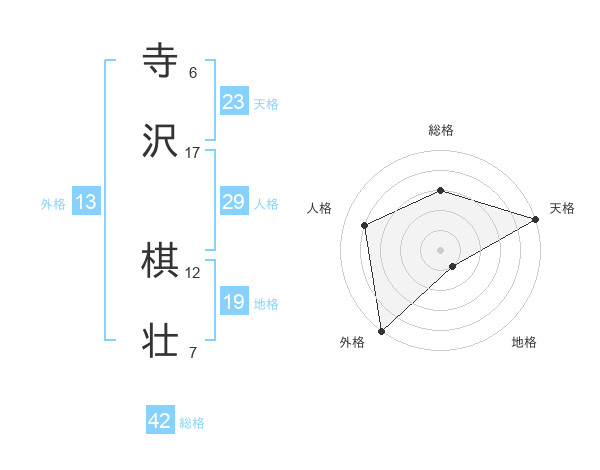 寺沢 棋壮さんを姓名の画数から五運を鑑定