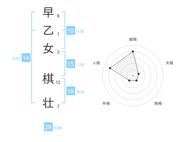 早乙女 棋壮さんを姓名の画数から五運を鑑定