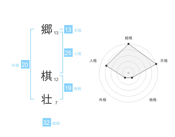 郷 棋壮さんの総格は32画の5点!