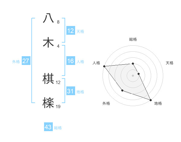 八木 棋檪さんを姓名の画数から五運を鑑定
