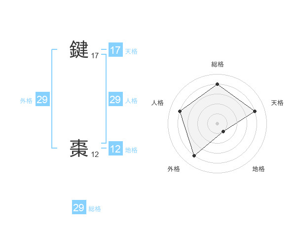 鍵 棗さんの総格は29画の4点!