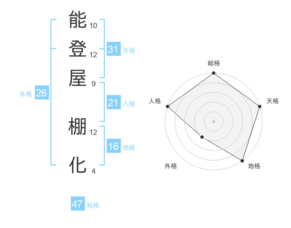 能登屋 棚化さんの総格は47画の5点!