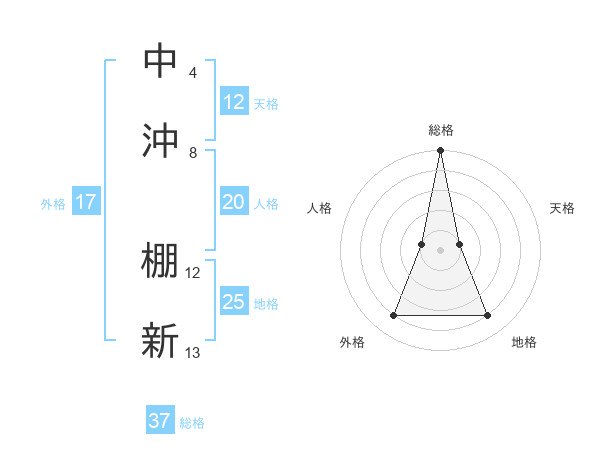 中沖 棚新さんを姓名の画数から五運を鑑定