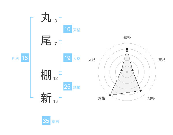丸尾 棚新さんを姓名の画数から五運を鑑定