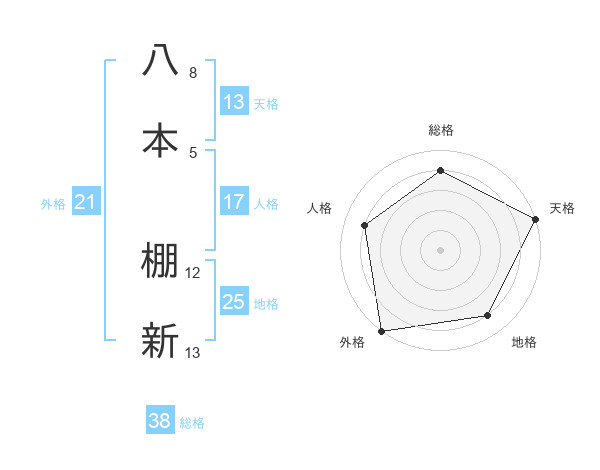 八本 棚新さんの総格は38画の4点!