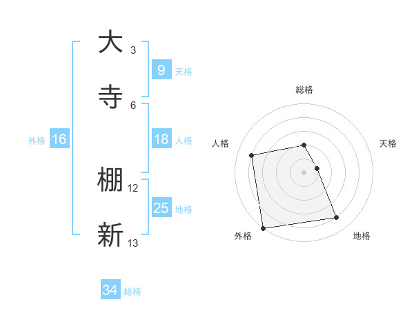 大寺 棚新さんの総格は34画の2点!